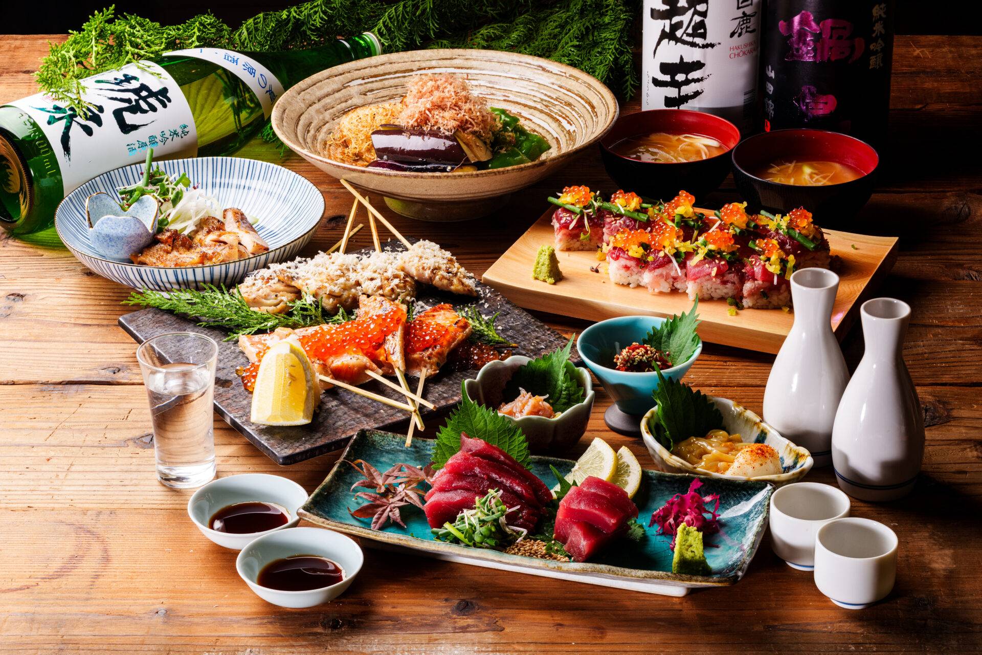 魚や肉の炭火焼きをはじめ、新鮮で濃厚なマグロ、自社工場で漬け込んだ味噌漬けなど、