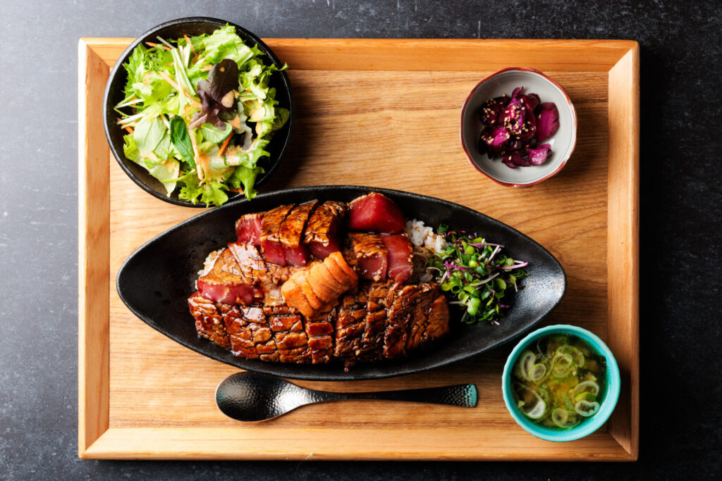 生雲丹乗せ生本マグロ断面レアステーキ寿司丼